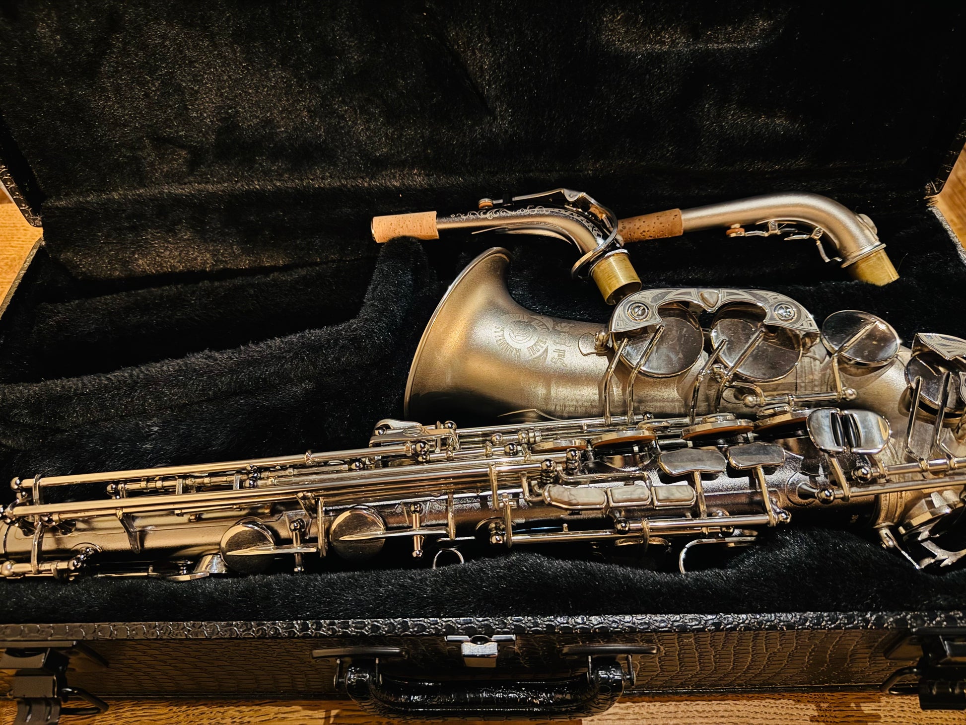 ネックが2本付属します。通常のネックとファットネックです。吹き心地や音に差があるので場面によっての使い分けや、口径の違うマウスピースを使用する場合などに大変役立ちます。